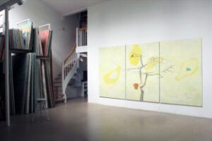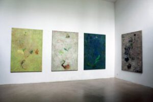 Ich färbe das Wachs mit Pigmenten und verarbeite es in heißem Zustand. Die entstehende Oberfläche kann sehr glatt oder auch plastisch werden. Sie ist mechanisch bearbeitbar. Auf ihr male ich weiter mit Ölfarben. Zur räumlichen Wirkung der Farbe kommt so ein starker Reiz des Materials.